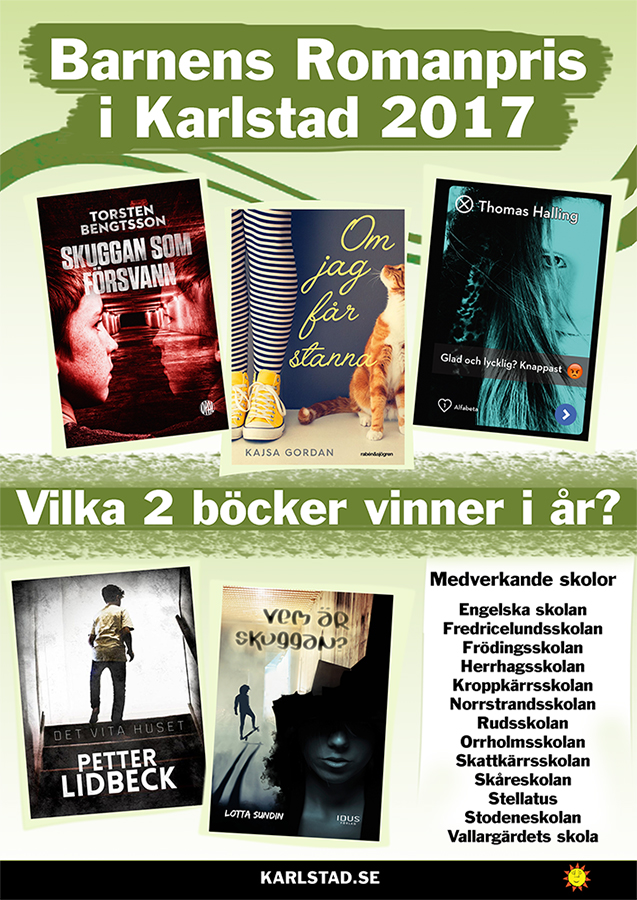 Min bok "Skuggan som försvann" från Bokförlaget Opal är nominerad till Barnens Romanpris 2017. Nu är det bara för mig att hålla tummarna medan barnens ska läsa, tycka till och rösta. Det blir en spännande väntan. Vinnarna presenteras i Karlstad i början på februari.